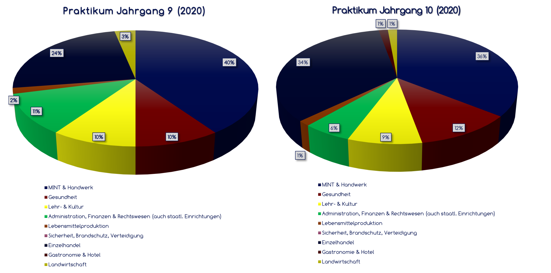 Im neunten und zehnten Jahrgang finden die Betriebspraktika für Schülerinnen und Schüler unserer Schule statt. Der zehnte Jahrgang startet in den zwei Wochen vor den Herbstferien und der neunte Jahrgang zieht in den zwei Wochen im Anschluss der Herbstferien nach.