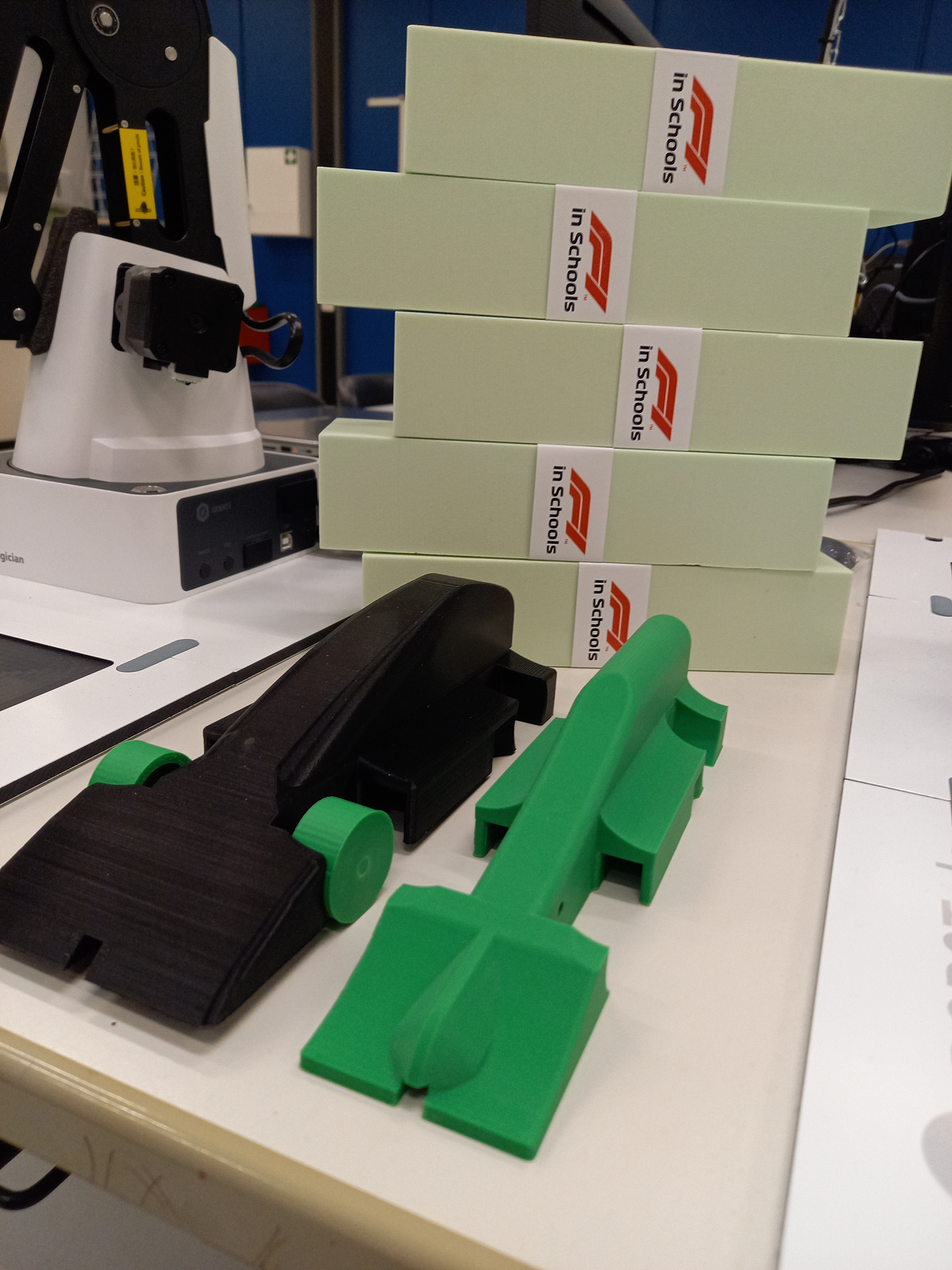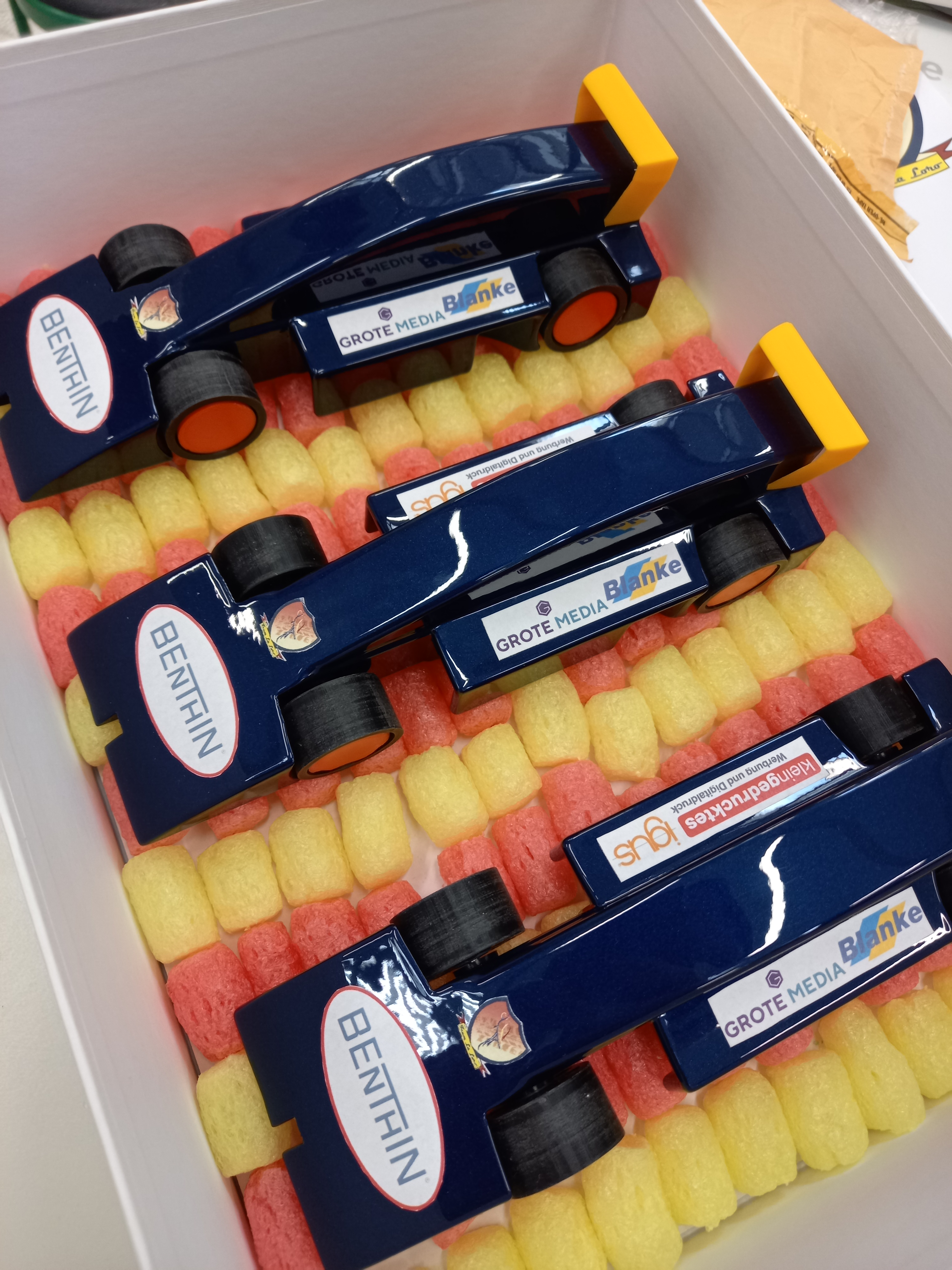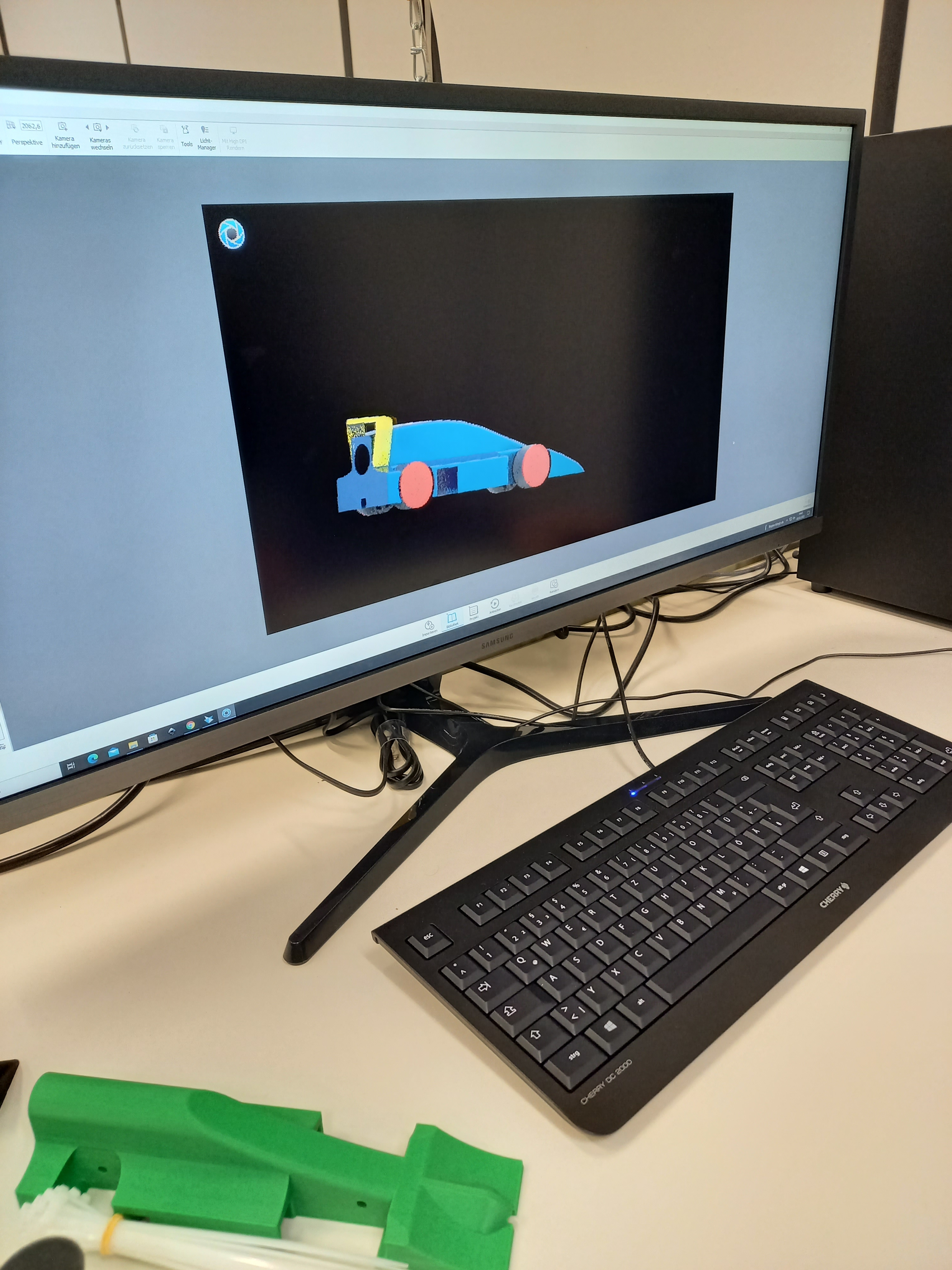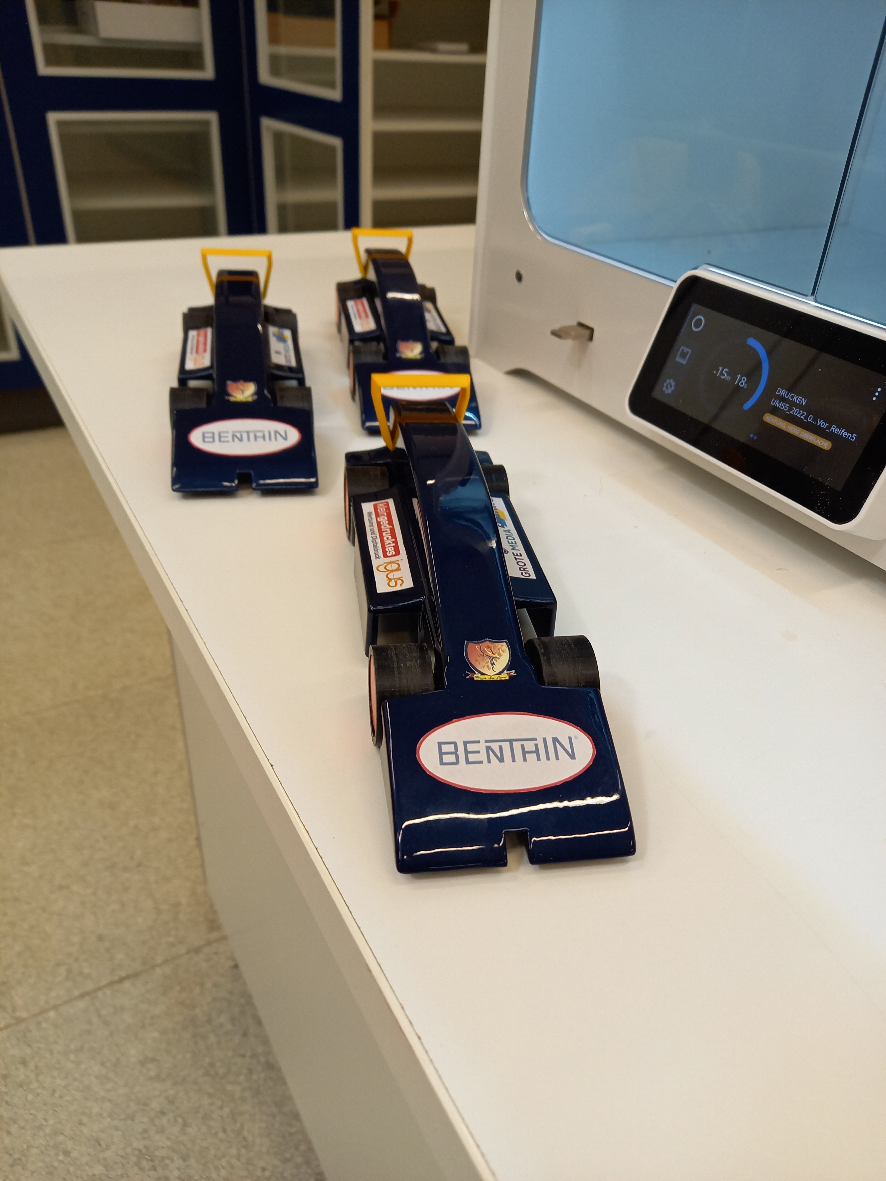 Zu Beginn des Wettbewerbs haben Julian und Felix jeweils ein Auto konstruiert. Julians Expertise wurden dann in Felix‘ Entwurf eingebunden. So dass Julian ebenfalls in die Reifenentwicklung eingebunden wurde und Marie unterstützen konnte. Zudem hat Julian den ersten Rennwagen als Prototyp im 3D-Drucker erfolgreich gedruckt. Des Weiteren hat Julian seine Ideen bei der Umsetzung des virtuellen Teamstand eingebracht.