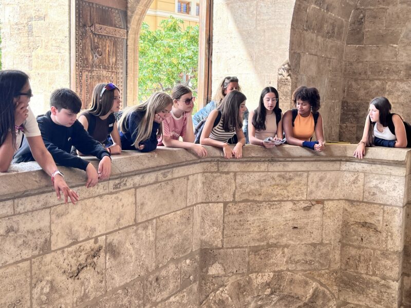 Ein Höhepunkt der Woche war der gemeinsame Ausflug nach Valencia. Dort besichtigten die Jugendlichen unter anderem das Rathaus, die Plaça Redona, die Torres de Serranos, die Kathedrale und den Mercado Central. Die spanischen Schüler:innen hatten dazu kurze Präsentationen vorbereitet, sodass das Vorwissen aus dem WPK Connecting Games aufgefrischt wurde. Nach einer Stunde Freizeit zum Shoppen führte die Fahrt zum futuristischen Museum of Arts and Science für einen kurzen Fotostopp. Anschließend verbrachte die Gruppe einen sonnigen Nachmittag am Strand – mit Mittagessen, Baden und Spielen im Meer.