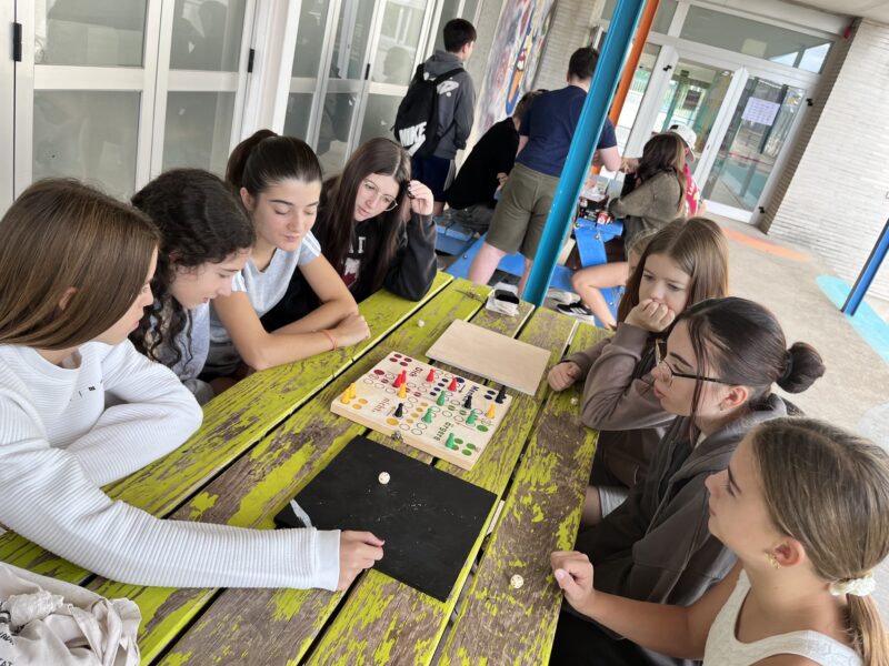 In der Schule überreichten unsere Schülerinnen und Schüler ihre mitgebrachten Geschenke: eine Sammlung von Spielklassikern und selbstgestaltete „Mensch ärgere dich nicht“-Spielbretter aus dem WPK Connecting Games. Anschließend wurden die Spiele ausprobiert – darunter auch neue Spiele, die im Rahmen des eTwinning-Projekts entwickelt wurden.