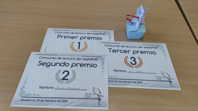 Die ersten drei Plätze wurden im Anschluss ausgezeichnet. Eine der Preisträgerinnen wird unsere Schule beim Landesvorlesewettbewerb „Leo, leo – ¿qué lees?“ des Deutschen Spanischlehrkräfteverbands in Bremen vertreten.