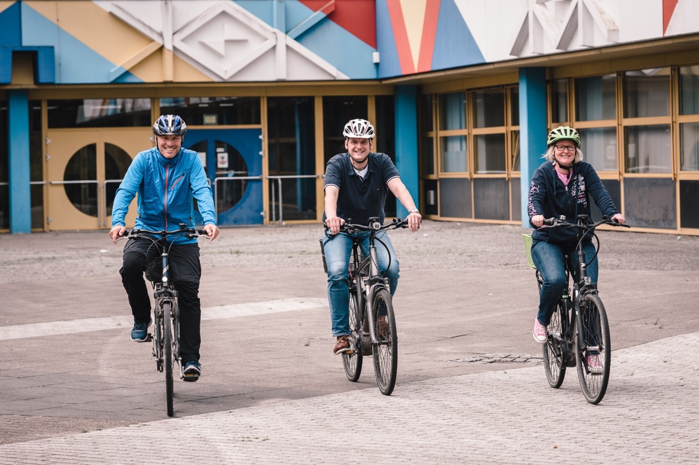 Auch die Schulleitung der Oberschule Langen war von Aktion überzeugt. So ließen unser Schulleiter Jan Lückert (Bildmitte), unsere stellvertretende Schulleiterin Kirsten von der Lieth (rechts) und unser didaktische Leiter Michael Bergmann (links) mehrmals in der Woche das Auto stehen und fahren die 10-15 Kilometer lange Fahrtstrecke zur Schule mit dem Fahrrad.